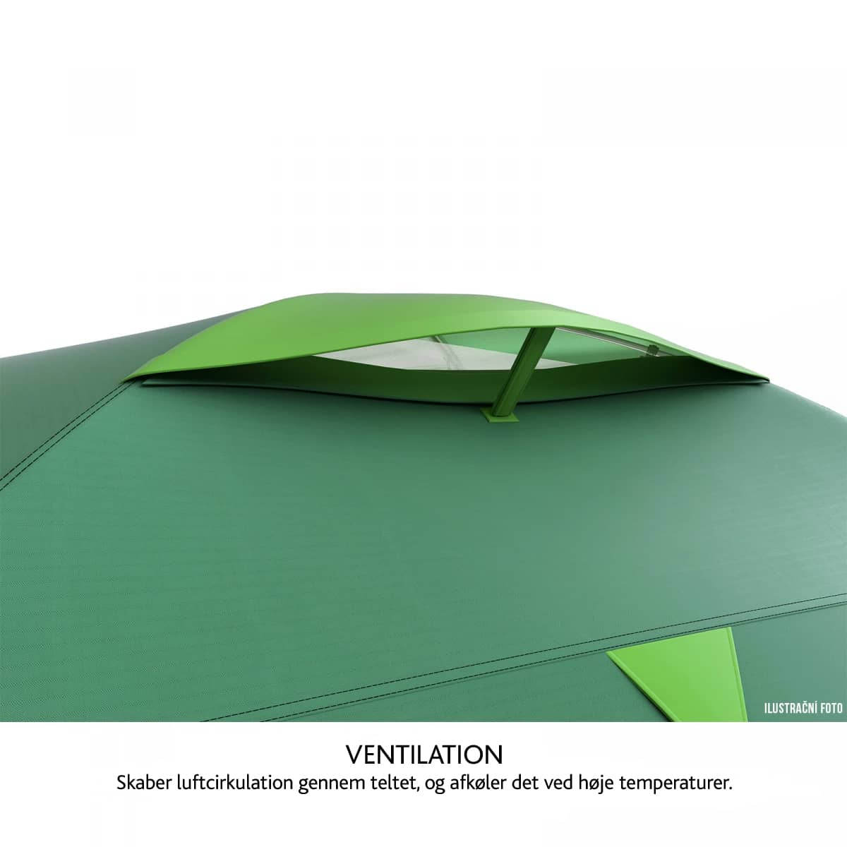 Teltet har to indgange og to rummelige apsisser. Hertil en optimal ventilation, så man er sikret en virkelig god komfort som bruger af teltet.