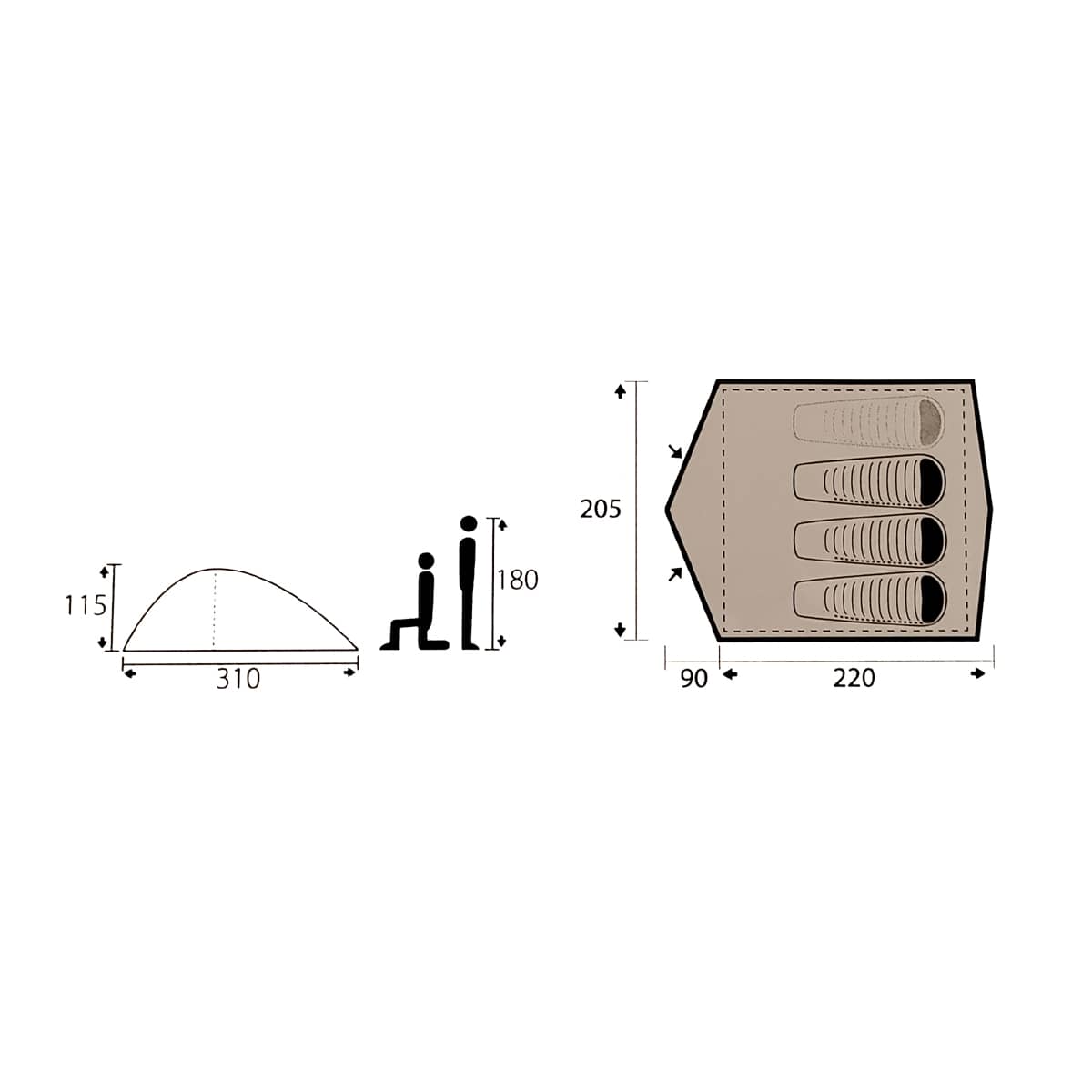 Med den solide Durawrap konstruktion, den ekstra længde og en apsis med plads til gear etc. er dette et meget komfortabelt og stabilt telt.